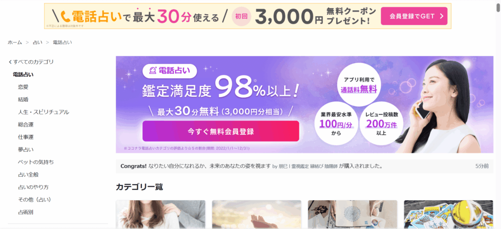 24時間いつでも、スキマ時間に相談できる「ココナラ電話占いなら、